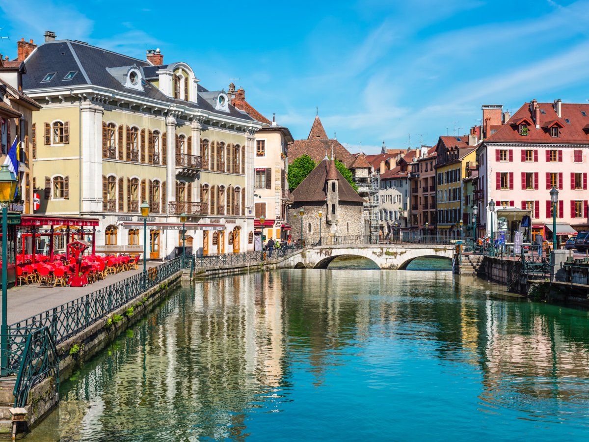 Tại thị trấn Annecy cũ của Pháp, du khách được chào đón bởi những ngôi nhà sơn màu phấn và những quán cà phê lót bờ hồ xinh xắn. Dạo chơi trong nhiều quán ăn ngoài trời, đạp xe dọc theo kênh nước, hoặc chiêm ngưỡng các di tích lịch sử như Château d'Annecy.