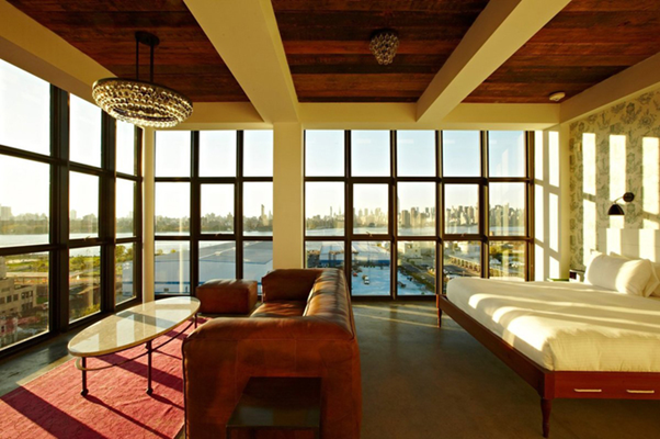 Bạn yêu thích sự mộng mơ, bạn yêu thích đường chân trời Manhattan nổi tiếng xuất hiện trong những bộ phim bom tấn của Hollywood. Bạn mơ ước một lần được thấy điều đó. Nếu thật sự là vậy thi khách sạn The Wythe Hotel chính là thiên đường mà bạn nên một lần đặt chân đến. Một khách sạn nằm dọc theo phố Williamsburg, bên cạnh bờ sông Brooklyn, khách sạn Wythe từng là một xưởng đóng thùng và được cải tạo để trở thành khách sạn từ năm 1901. Nếu bạn muốn ngắm cảnh đẹp, có 2 sự lựa chọn đẹp là ngồi tại quán bar trên sân thượng nếu bạn yêu thích náo nhiệt một chút hoặc có thể thuê phòng hoàng gia dành cho 2 người để trải nghiệm không khí lãng mạn. Khách sạn thuộc thủ đô New York của Mỹ. Giá phòng dao động từ 300 USD/đêm.