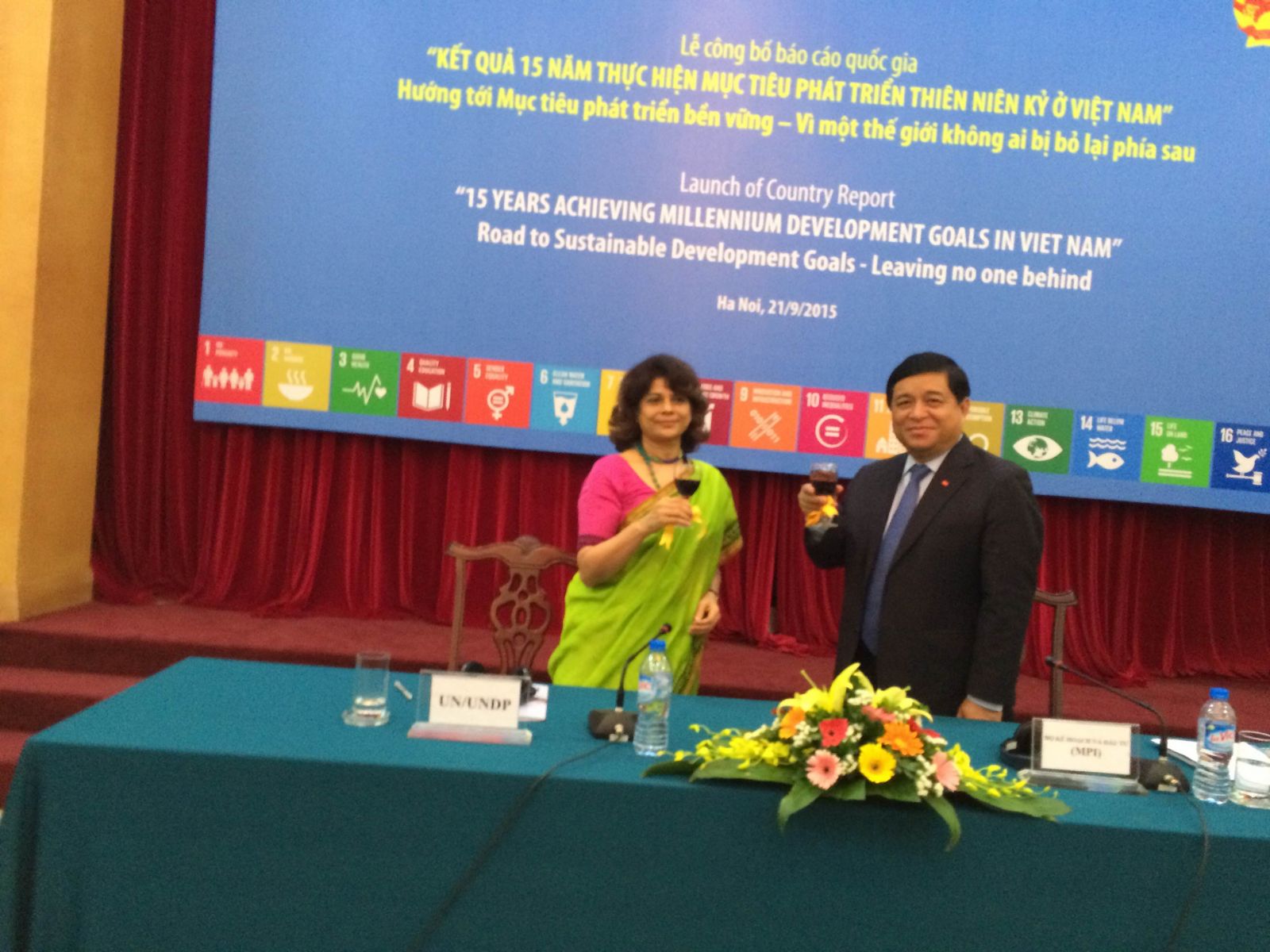 Tại buổi lễ công bố, Thứ trưởng Bộ Kế hoạch và Đầu tư Nguyễn Chí Dũng cho biết, đây là báo cáo quan trọng đánh dấu sự kết thúc Mục tiêu Phát triển thiên niên kỷ trong suốt chặng đường 15 năm qua, đem đến cái nhìn sâu sắc và toàn diện đối với thách thức mà Việt Nam phải đối mặt. Việt Nam đã có nhiều nỗ lực trong thời gian qua, đáng chú ý là tăng trưởng kinh tế đạt trên 7% trong giai đoạn 2001-2010. Đặc biệt đến năm 2010, Việt Nam chính thức thoát khỏi nhóm quốc gia kém phát triển để vào nhóm quốc gia thu nhập trung bình. Về đối ngoại, Việt Nam trở thành thành viên thứ 150 của WTO, mở ra chương mới cho quá trình hội nhập.