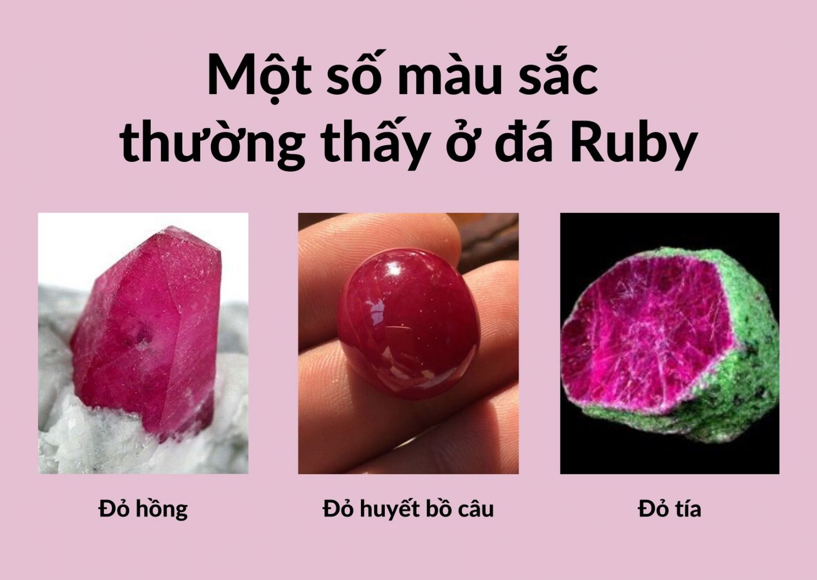 Khi chọn mua đá, yếu tố bạn không thể bỏ qua đó chính là màu sắc. Đa số các loại đá tự nhiên không có màu sắc sặc sỡ, cùng 1 loại đá hiếm khi có màu giống nhau hoàn toàn.Chẳng hạn như ở đá Ruby thường có dải lan màu như Ruby đỏ hồng, đỏ phớt, đỏ tía, đỏ mận. Với những viên Ruby có màu đỏ huyết bồ câu thì giá trị rất cao và hiếm. Vì vậy, nếu bạn thấy những viên đá có màu sắc rất đẹp, lại đều màu thì có thể đã bị xử lí nhuộm. Với loại này, ngâm trong nước axeton hoặc mang lâu ngày tiếp xúc với hoá chất sẽ khiến màu bị phai, dính vào da, vào áo quần là thấy rõ nhất. Ngoài ra, với những viên đá nhuộm màu thường sẽ có vết đọng màu ở khe nứt, nếu quan sát kĩ bạn sẽ dễ dàng nhận thấy điều này.