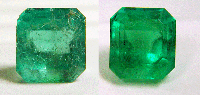 Đá Emerald trước và sau khi được xử lý tẩm dầu