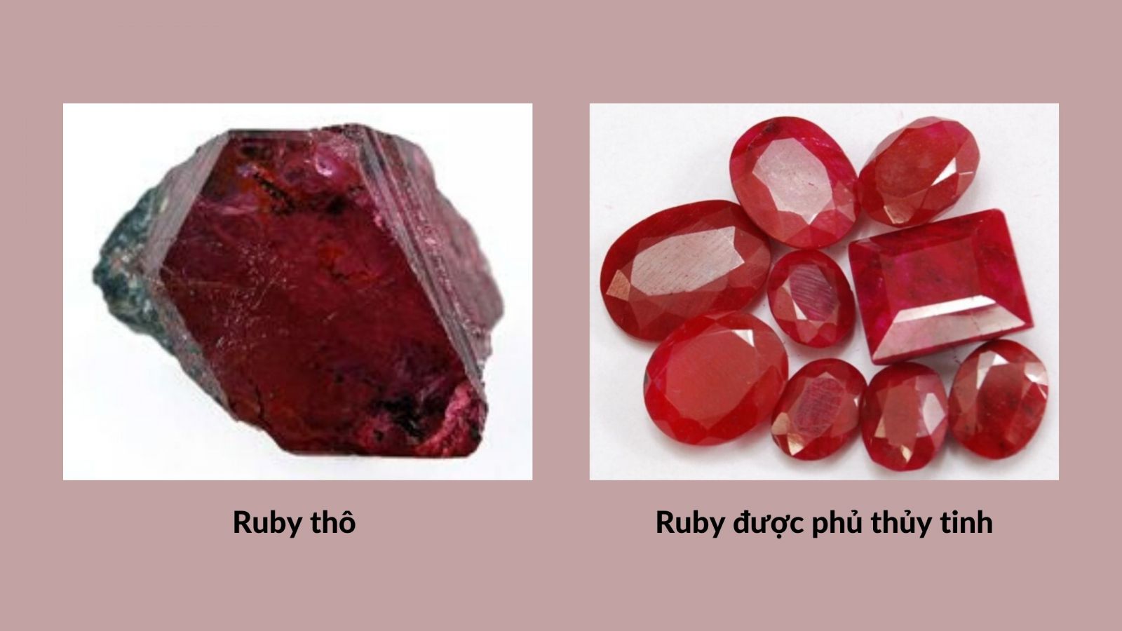 Đá Ruby trước và sau khi được xử lý phủ thủy tinh