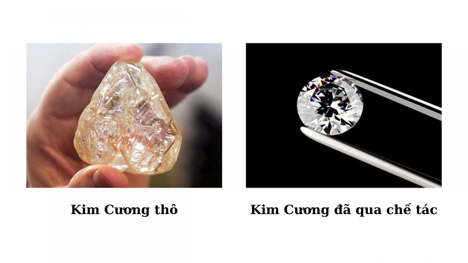 Một viên Kim Cương thô được khai thác chỉ có giá trị 40% so với Kim Cương đã chế tác. Quá trình cắt gọt, đánh bóng, tạo hình, tạo giác cắt,... Tất cả đều bằng thủ công qua bàn tay khéo léo của thợ kim hoàn thì mới cho ra được viên Kim Cương hoàn hảo.