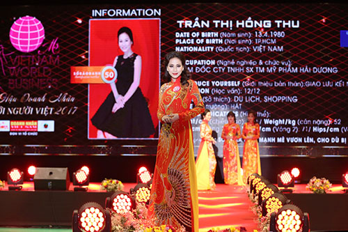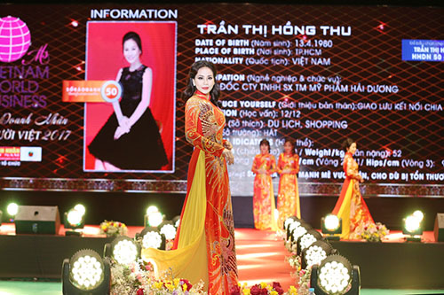 Ngay từ khi quyết định tham gia cuộc thi Hoa hậu Doanh nhân Thế giới người Việt 2017, cái tên Hồng Thu đã là gương mặt sáng giá. Nếu như tự nhận mình là kiểu người kém về giao tiếp và tự ti trong ứng xử thì càng đi sâu vào cuộc thi, dường như chị càng chứng minh điều ngược lại.