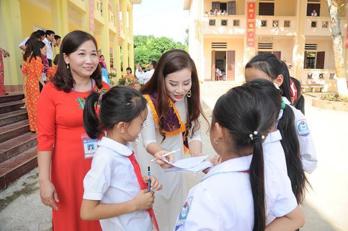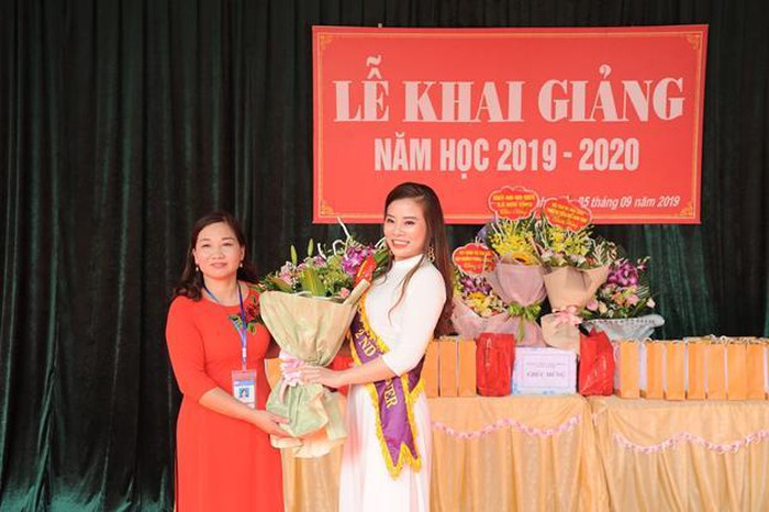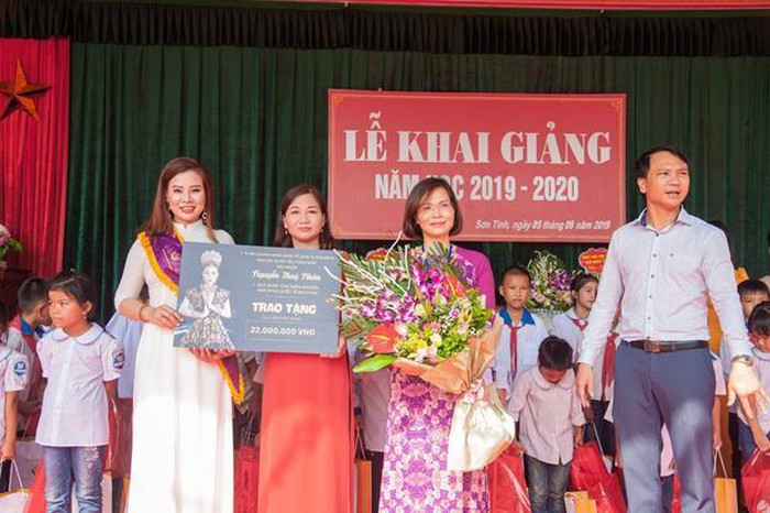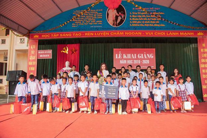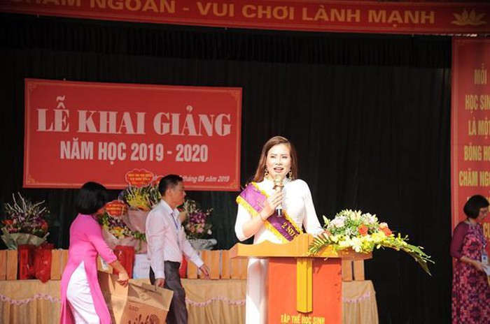 Trong lễ khai giảng ban giám hiệu nhà trường gửi lời cảm ơn chân thành tới Á hậu cùng các thành viên trong đoàn thiện nguyện và dành lời động viên khích lệ tinh thần học tập cho các em, gửi lời cảm ơn các thầy cô đã không quản ngại khó khăn ươm những mầm xanh tương lai của đất nước.