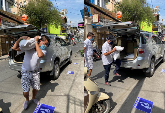 Một mạnh thường quân đến đóng góp gạo và khẩu trang tại điểm 294 Nguyễn Trọng Tuyển…