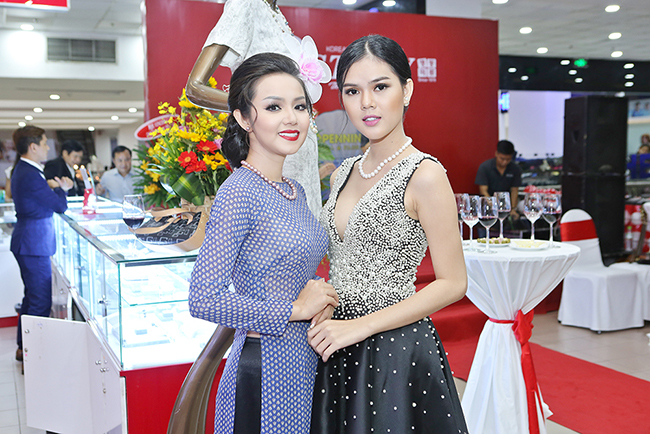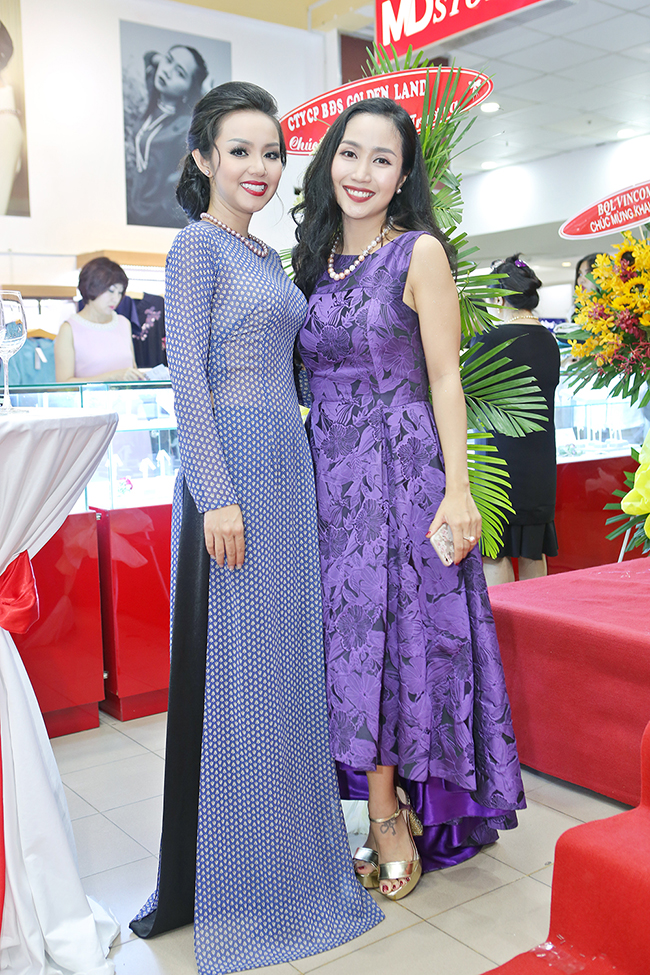 Nữ ca sỹ nhạc trữ tình chụp hình với chủ nhân thương hiệu MD Story. Cô được thương hiệu này phong tặng danh hiệu Hoa hậu Ngọc Trai