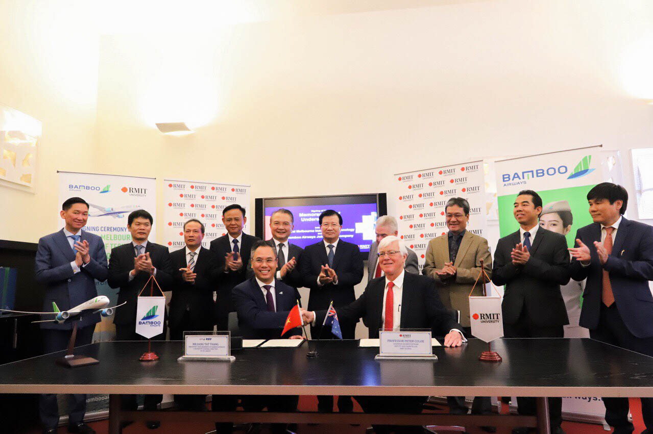 Ngày 26/11, dưới sự chứng kiến của Phó Thủ tướng Chính phủ Trịnh Đình Dũng, Đại sứ Đặc mệnh toàn quyền Việt Nam tại Úc Ngô Hướng Nam và Cục trưởng Cục Hàng không Việt Nam Đinh Việt Thắng, hãng hàng không Bamboo Airways đã tiến hành Lễ ký kết và trao đổi Biên bản ghi nhớ hợp tác (MoU) với Trường đại học RMIT và sân bay Melbourne tại Úc.