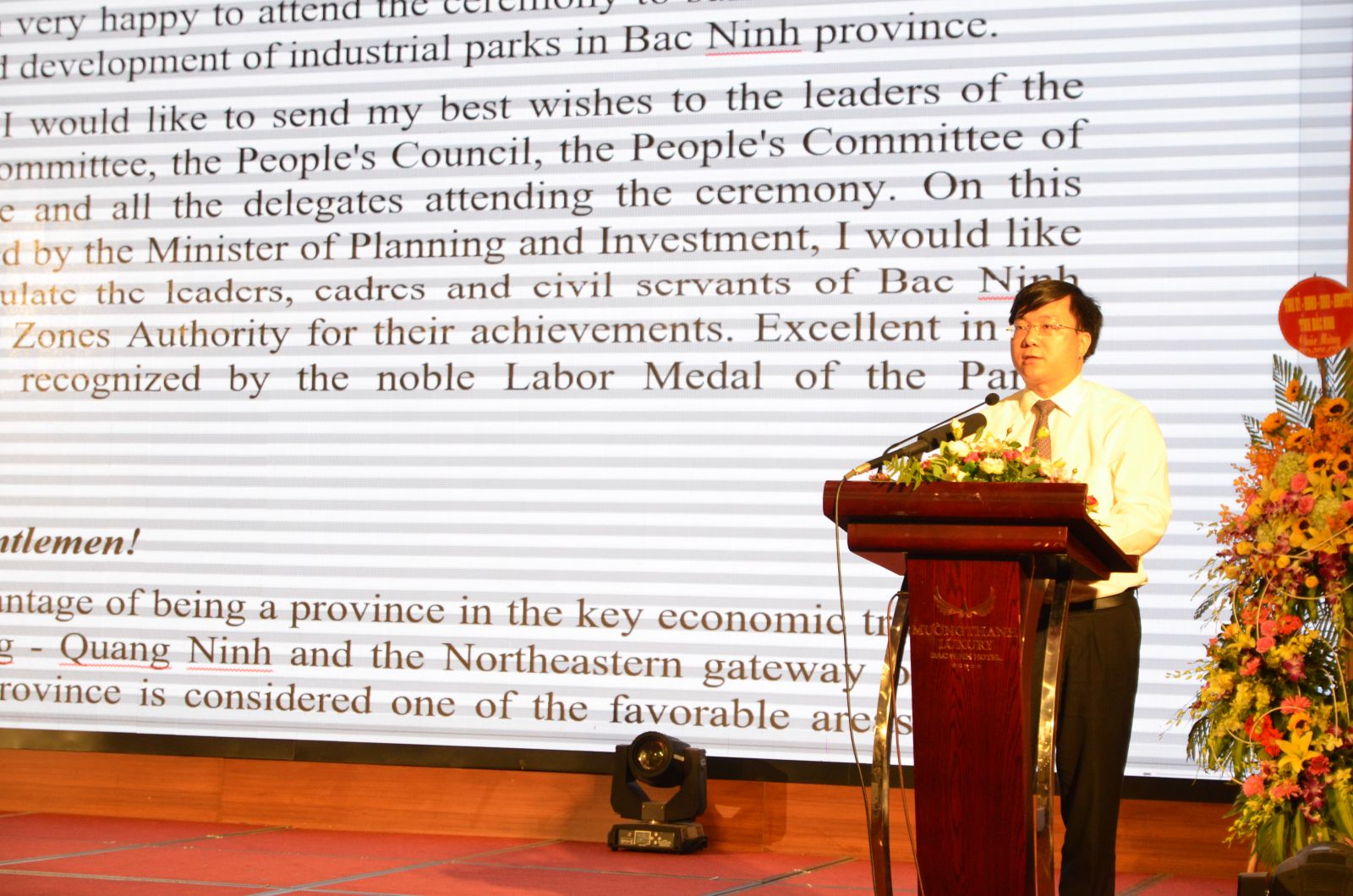 Thay mặt lãnh đạo Bộ Kế hoạch và Đầu tư, đồng chí Trần Duy Đông- Vụ trưởng Vụ Quản lý các Khu kinh tế- Bộ Kế hoạch và Đầu tư ghi nhận và biểu dương những thành tích xuất sắc mà Ban Quản lý đã đạt được trong quá trình 20 năm xây dựng và phát triển các KCN của tỉnh.