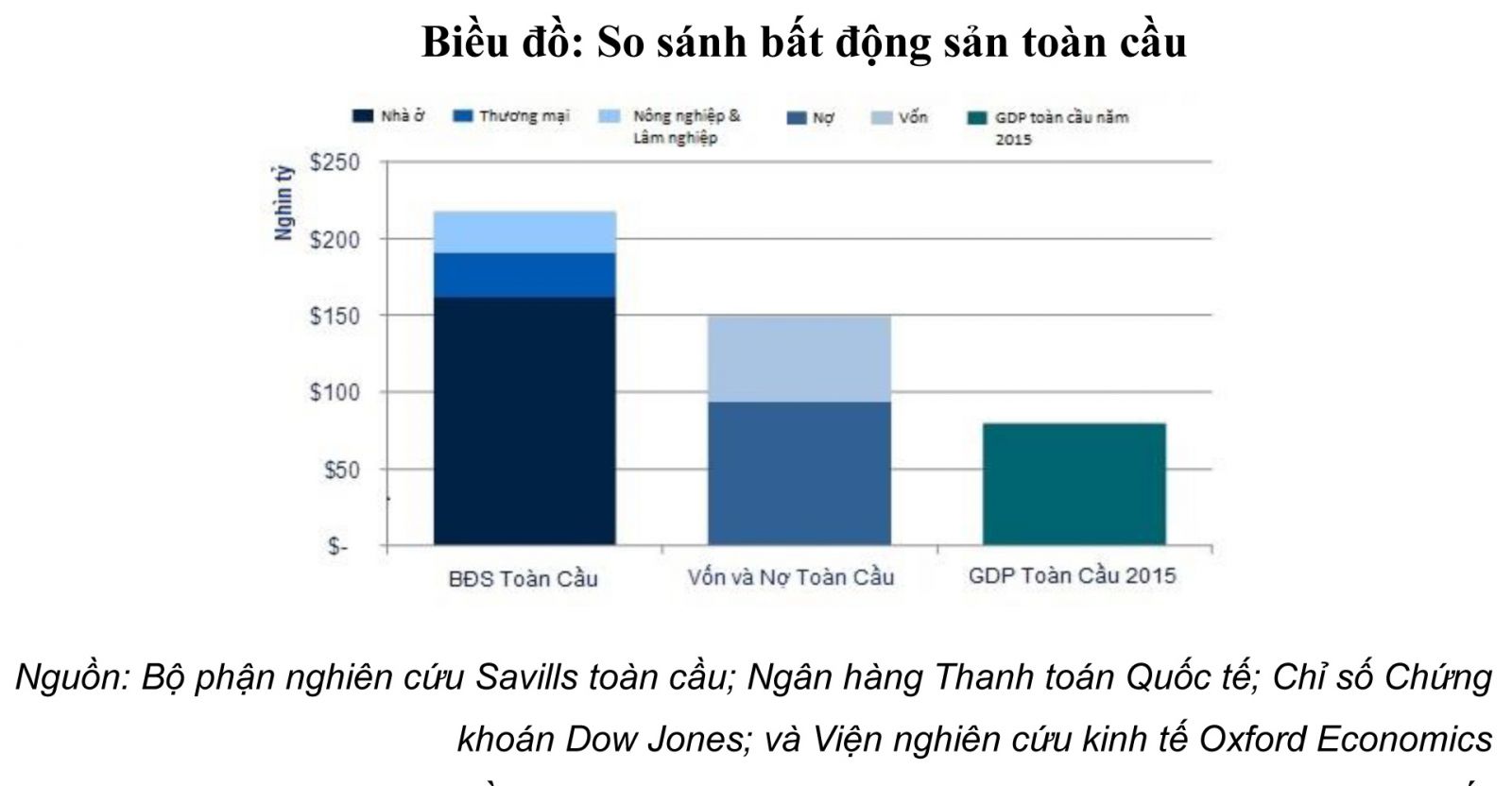 Giá trị bất động sản toàn cầu trong năm 2 015 (với 75% là bất động sản nhà ở) cao gấp 2,7 lần Tổng sản phẩm quốc nội (GDP) toàn cầu, tương đương chiếm khoảng 60% tổng lượng tài sản của thế giới. Bất động sản cũng đại diện cho trữ lượng tài sản quan trọng của mỗi quốc gia, doanh nghiệp và cá nhân.