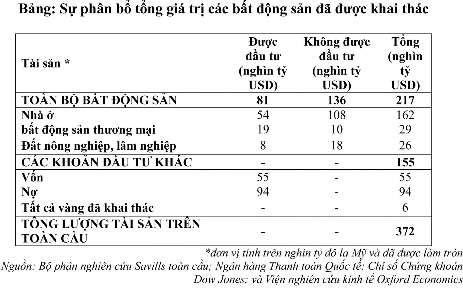 Bất động sản chiếm 60% tồng lượng tài sản toàn cầu