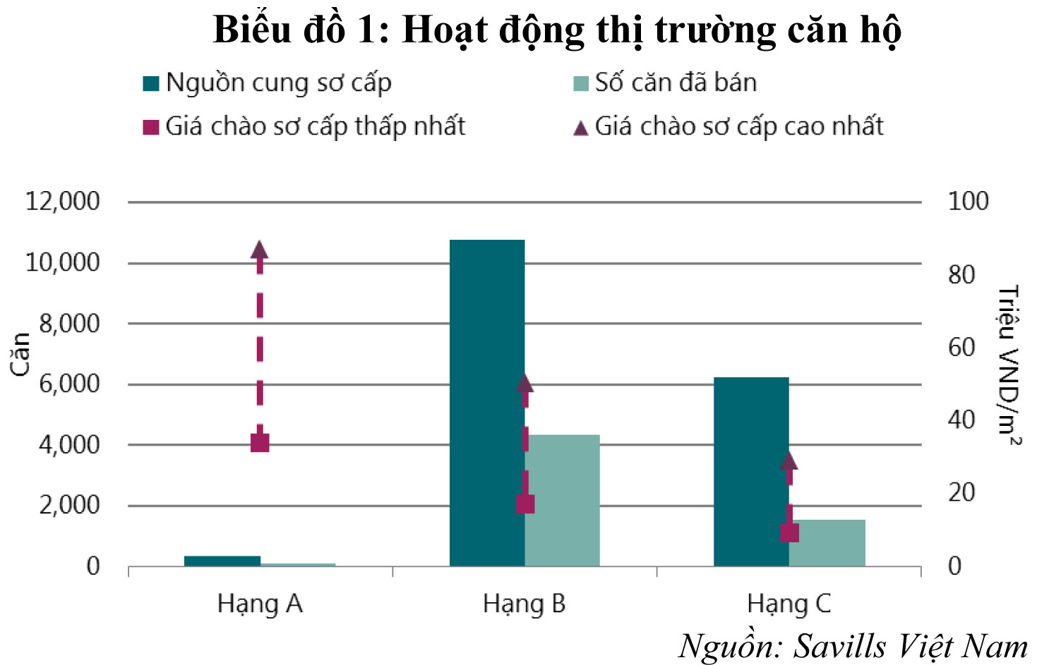 Trong quý II/2016, tổng nguồn cung sơ cấp căn hộ khoảng 17.370 căn, tăng 7% theo quý và 29% theo năm. Có 10 dự án đang bán và 16 dự án mới, cung cấp thêm 6.700 căn, tăng 1% theo quý. Theo dự báo của Savills, trong nửa cuối năm 2016, có khoảng 22.000 căn từ 41 dự án, chủ yếu hạng B, dự kiến sẽ mở bán, tập trung ở quận Từ Liêm, Thanh Xuân và Cầu Giấy.