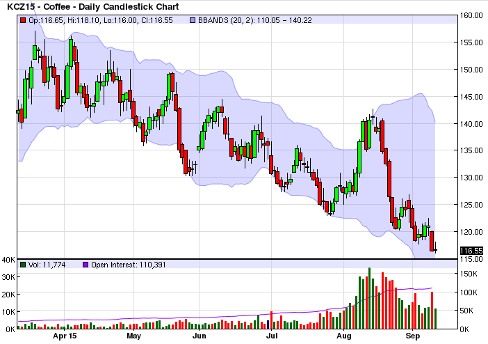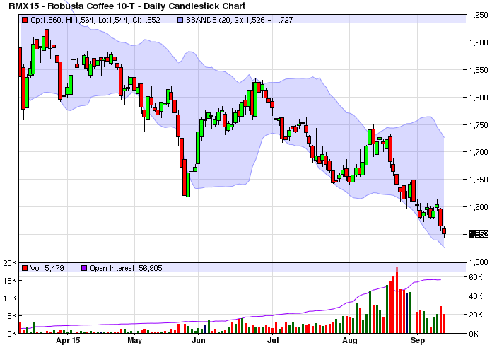 Tuy nhiên, sau đó giá cà phê chịu áp lực giảm mạnh trở lại do các quỹ đầu cơ bán cà phê khi đồng Real của Brazil giảm giá mạnh xuống mức thấp nhất mới trong vòng gần 13 năm so với đồng USD sau khi hãng đánh giá tín nhiệm Standard & Poor's hạ tín nhiệm của Brazil xuống hạng rác.