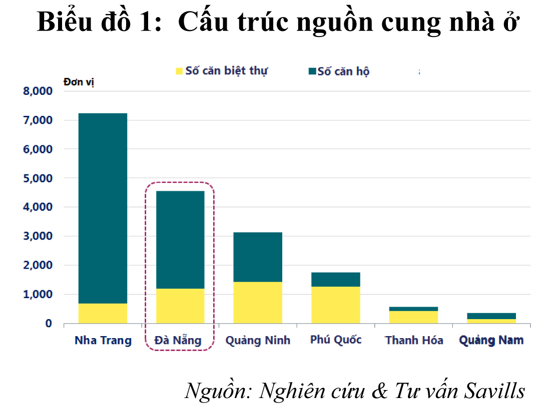 Theo báo cáo, Đà Nẵng đang là địa phương tiên phong trong bất động sản cao cấp ven biển và xếp thứ hai (sau Nha Trang) về tổng nguồn cung, với 1.199 biệt thự và 3.367 căn hộ. Đáng chú ý là có đến 80% người mua đến từ Hà Nội.