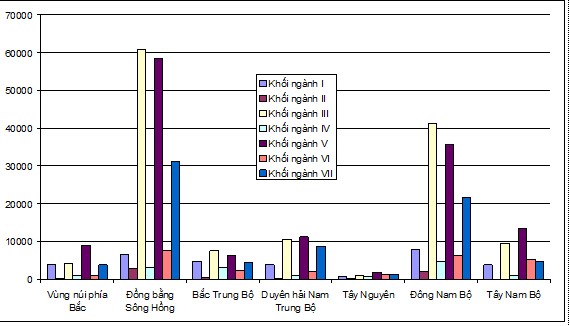 Biểu đồ: Phân bố chỉ tiêu khối ngành theo vùng miền