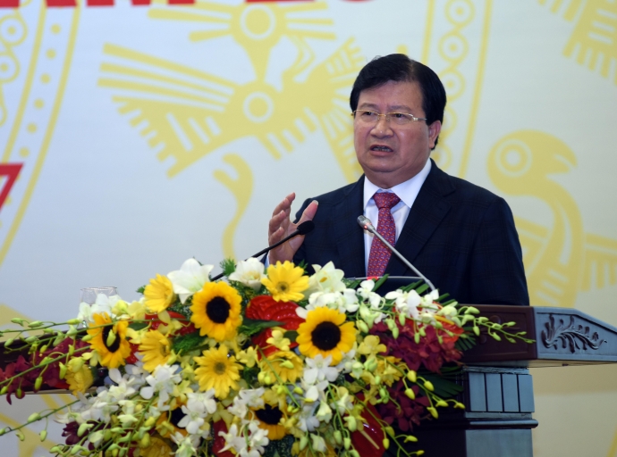 | Phó Thủ tướng Chính phủ Trịnh Đình Dũng phát biểu tại Hội nghị tổng kết năm 2016 và triển khai nhiệm vụ năm 2017 của Bộ Giao thông Vận tải |