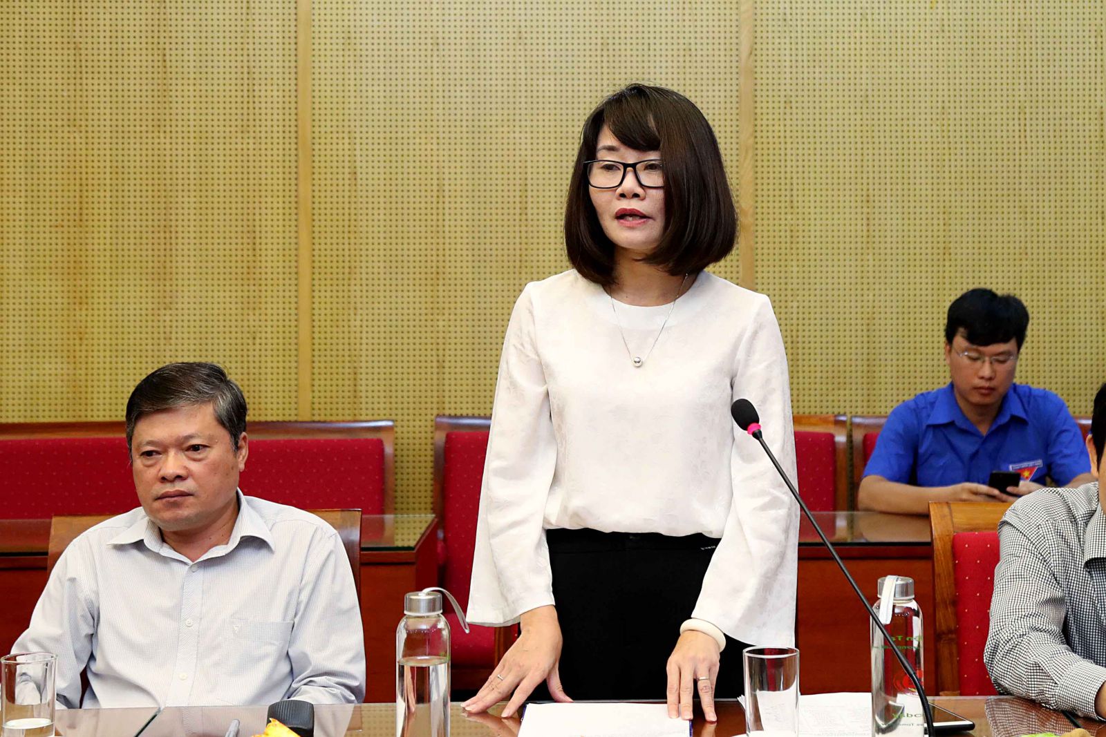 Vụ trưởng, Chủ tịch Công đoàn Bộ Nguyễn Thị Thu Lan báo cáo tình hình công tác đền ơn đáp nghĩa năm 2019 của Bộ Kế hoạch và Đầu tư. Ảnh: Minh Trang