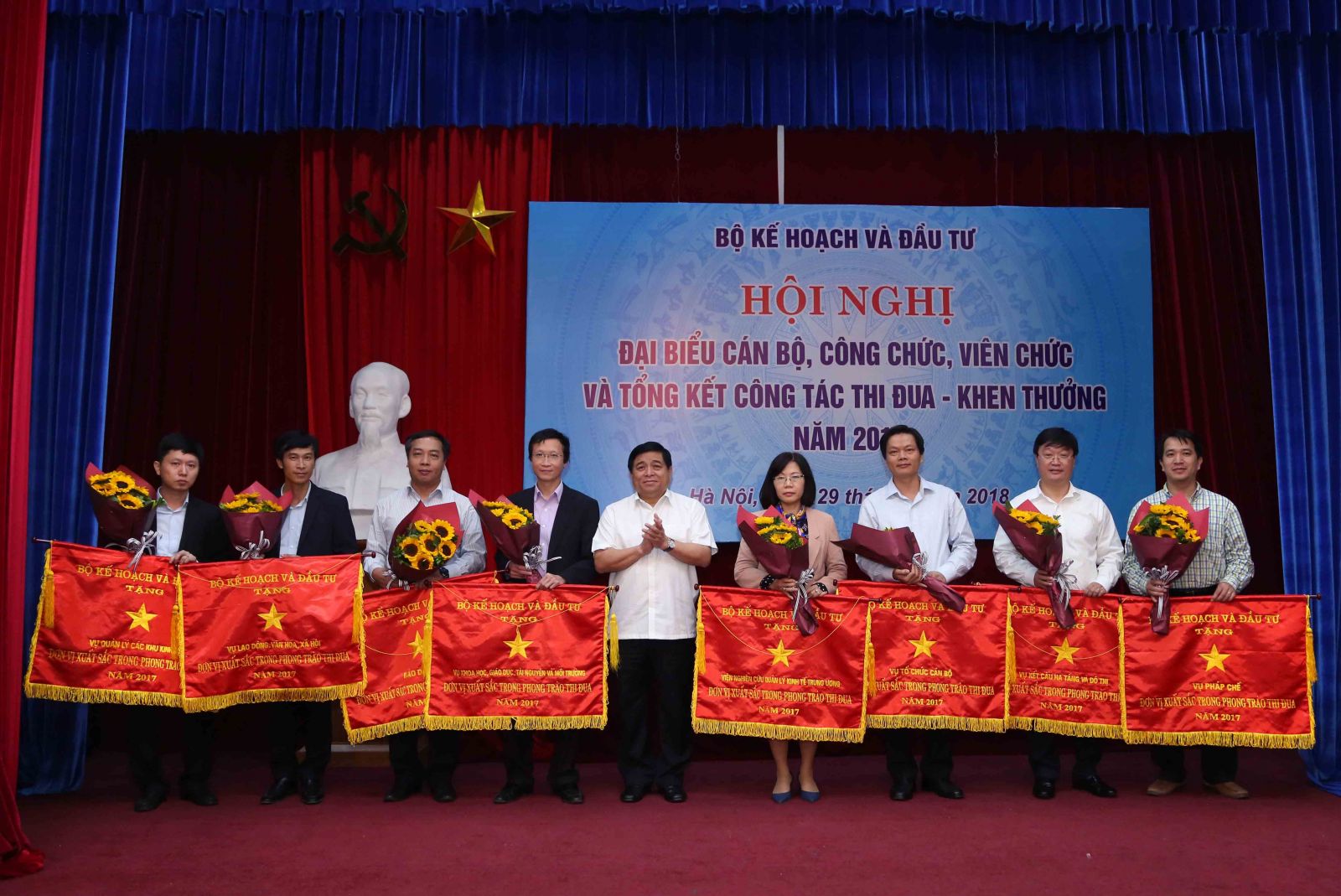 Bộ trưởng Nguyễn Chí Dũng trao Cờ thi đua của Bộ cho các đơn vị trong Bộ