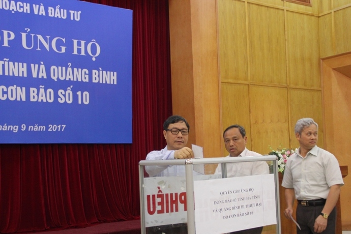 Để kịp thời chia sẻ những khó khăn, mất mát của đồng bào 2 tỉnh Hà Tĩnh và Quảng Bình bị thiệt hại do cơn bão số 10 gây ra, Công đoàn Bộ Kế hoạch và Đầu tư phát động và kêu gọi toàn thể cán bộ, công chức, viên chức và người lao động tại Bộ Kế hoạch và Đầu tư tham gia quyên góp, ủng hộ đồng bào bị thiệt hại (mức tối thiểu là 1 ngày lương).