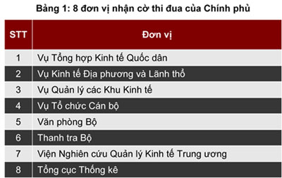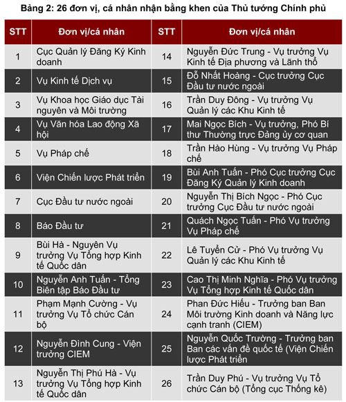 Đại hội Thi đua yêu nước ngành Kế hoạch, Đầu tư và Thống kê lần thứ III cũng đã tiến hành trao tặng cờ thi đua, bằng khen của Thủ tướng Chính phủ và của Bộ Kế hoạch và Đầu tư cho các đơn vị có thành tích xuất sắc. Cụ thể: có 8 đơn vị nhận Cờ thi đua của Chính phủ (Bảng 1); 26 đơn vị, cá nhân nhận Bằng khen của Thủ tướng Chính phủ (Bảng 2); 37 đơn vị nhận Cờ thi đua của Bộ Kế hoạch và Đầu tư...