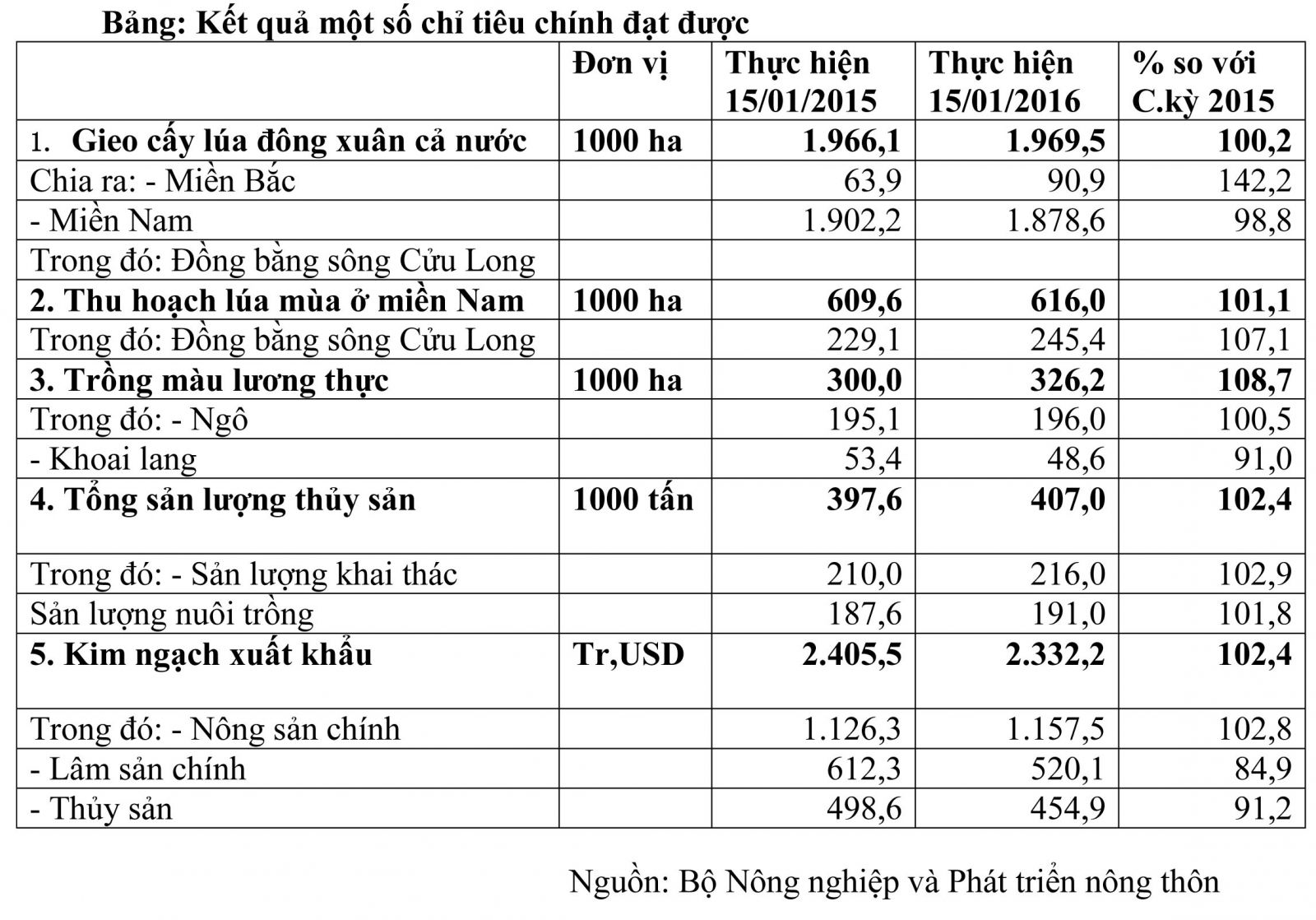 Bức tranh toàn ngành nông nghiệp tháng 01/2016