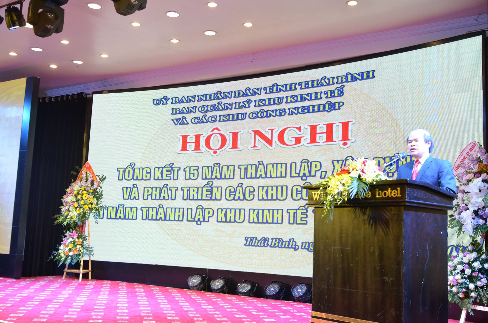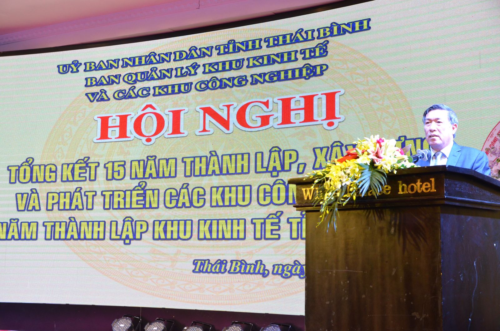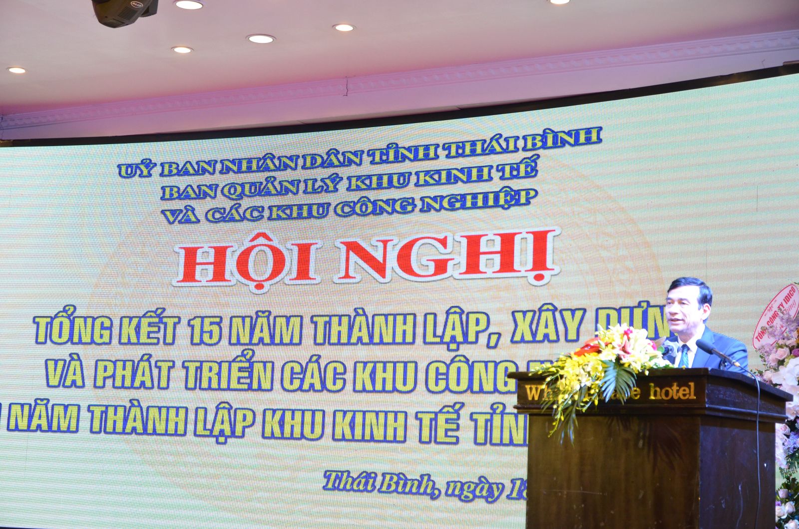 Tham dự và chỉ đạo Hội nghị, ông Đặng Trọng Thăng - Chủ tịch UBND tỉnh Thái Bình chúc mừng, biểu dương và đánh giá cao những đóng góp hết sức to lớn của tập thể cán bộ, công chức, viên chức Ban Quản lý KKT và các KCN tỉnh Thái Bình trong suốt chặng đường 15 năm xây dựng và phát triển các KCN, KKT. Chủ tịch Đặng Trọng Thăng khẳng định, trong suốt 15 năm qua, Ban Quản lý KKT và các KCN Tỉnh và các doanh nghiệp KCN đã nỗ lực vượt qua khó khăn, thách thức, đoàn kết, chủ động, sáng tạo, dám nghĩ, dám làm, hoàn thành xuất sắc các nhiệm vụ được giao.