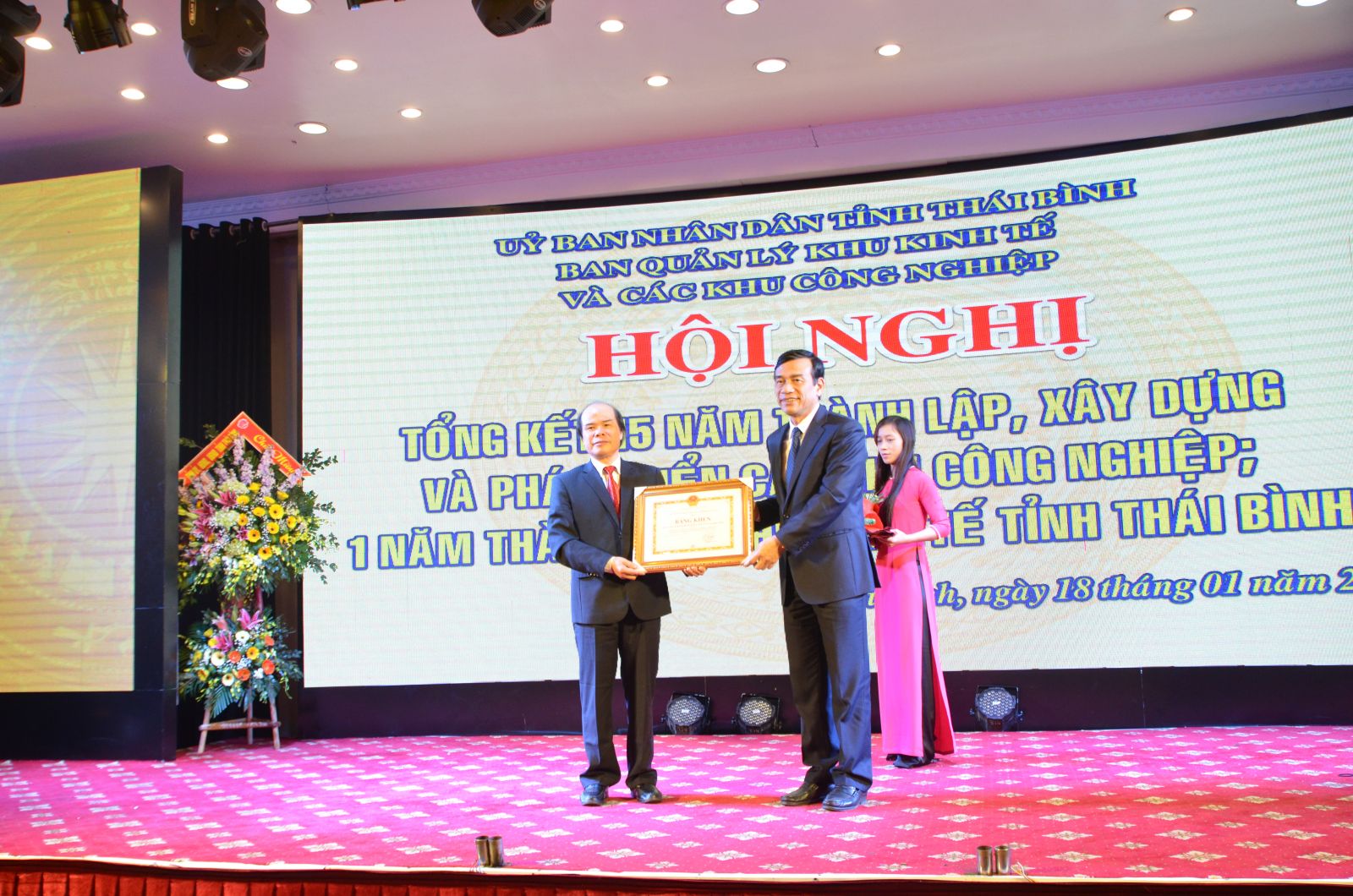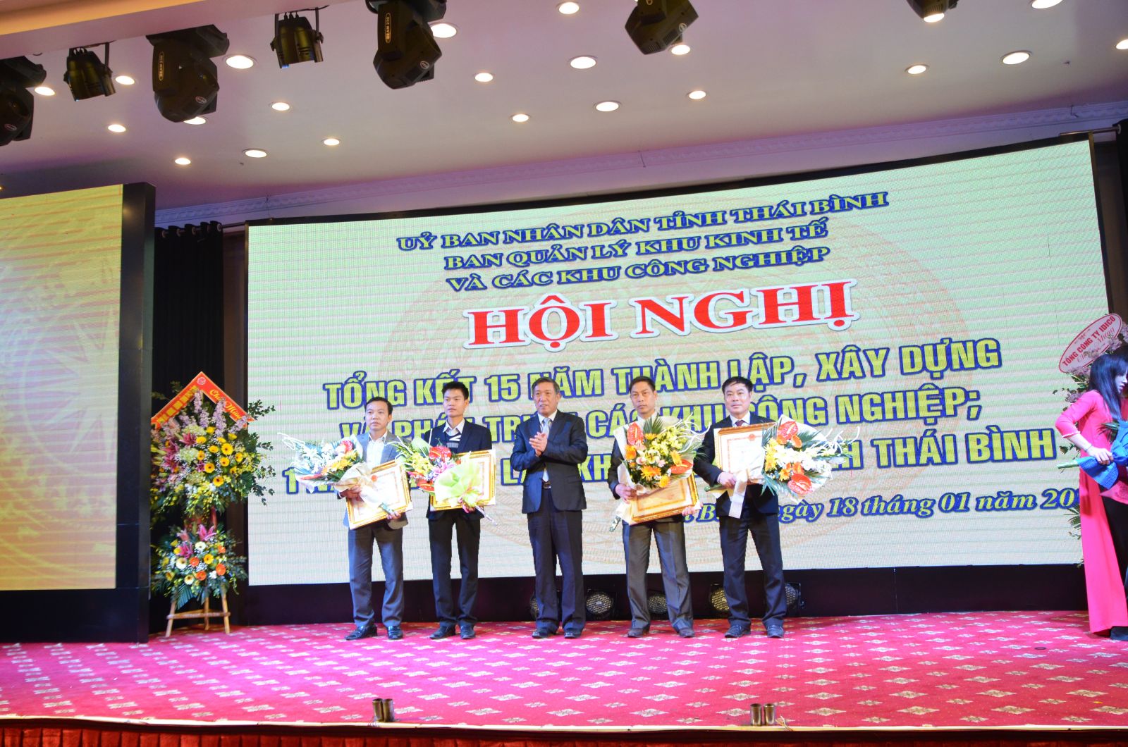 Ghi nhận những thành tích xuất sắc mà Ban Quản lý KKT và các KCN tỉnh Thái Bình và các doanh nghiệp KCN đã đạt được trong suốt chặng đường 15 năm qua, tại Hội nghị này, Ban Quản lý KKT và các KCN tỉnh Thái Bình và các doanh nghiệp trong các KCN đã vinh dự được UBND tỉnh Thái Bình tặng thưởng Bằng khen cho tập thể và cá nhân.