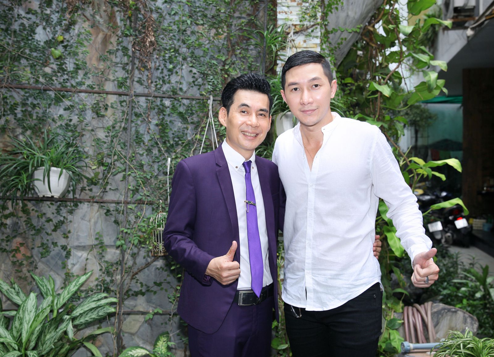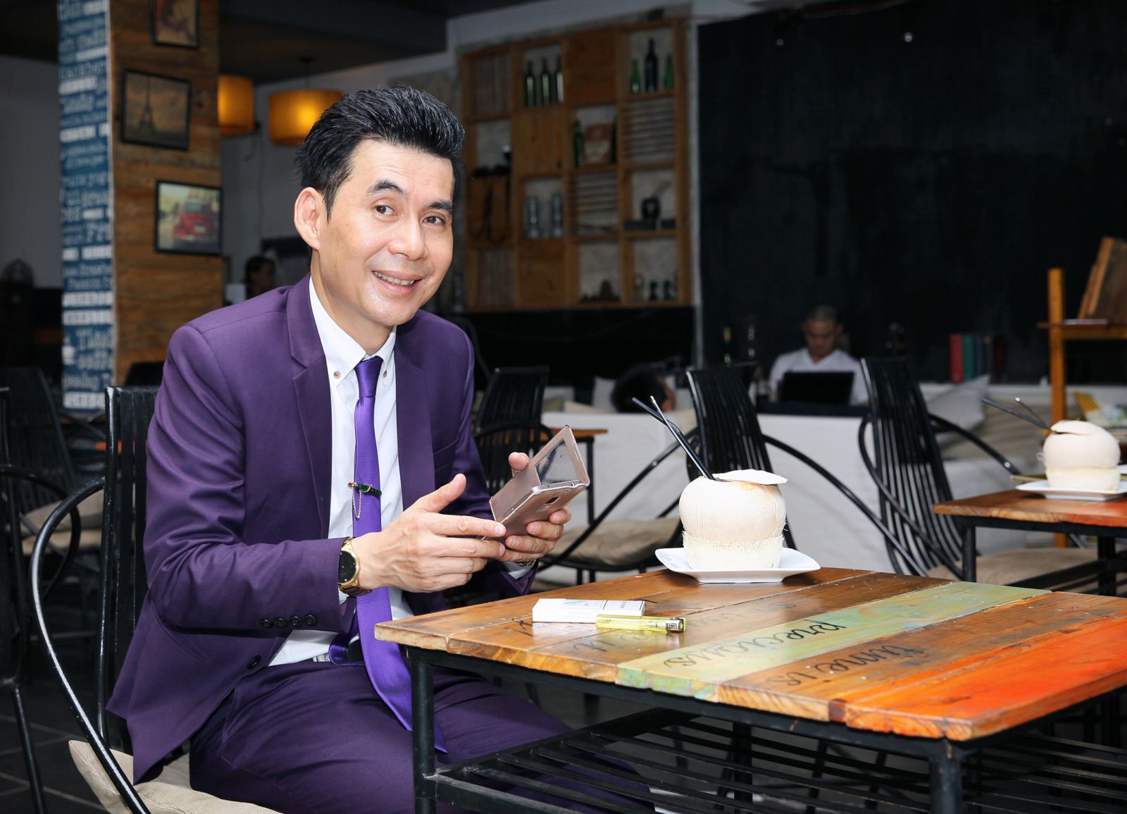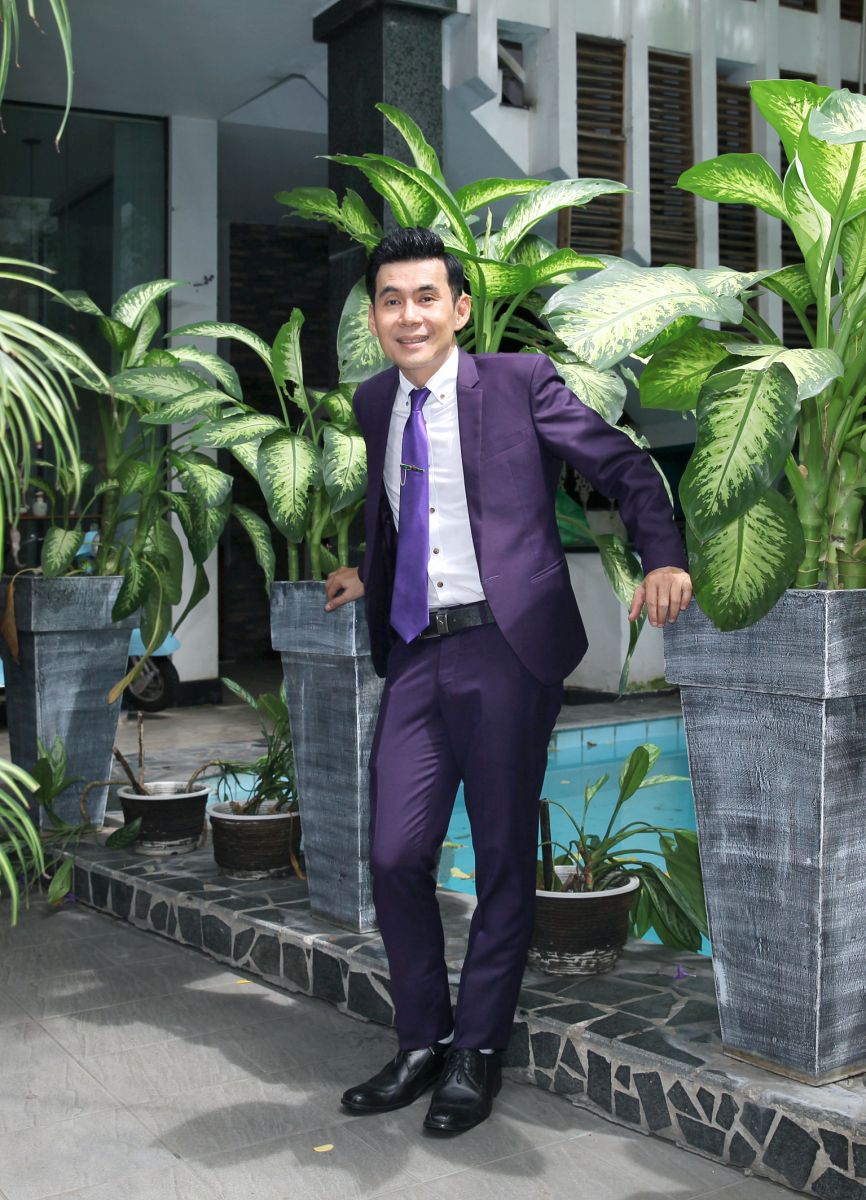 Vốn yêu thích màu tím nên anh được stylist của thương hiệu Mon Amie Veston chọn cho một bộ vest tím nổi bật