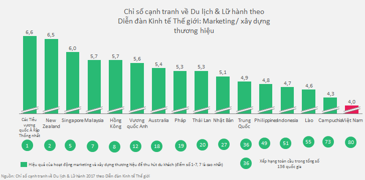 Điều đáng buồn là, theo xếp hạng của Diễn đàn Kinh tế Thế giới, Việt Nam xếp hạng thấp (80/136 quốc gia) về hiệu quả marketing và xây dựng thương hiệu.