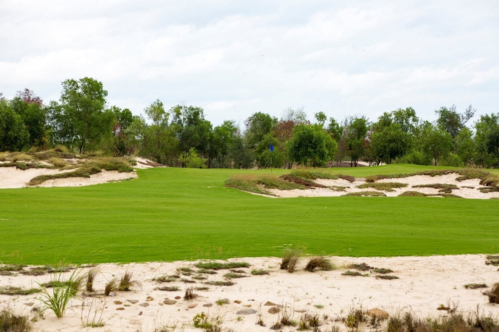 | Brian Curley - người đứng thứ 4 trong bảng xếp hạng “Kiến trúc sư của năm” do Golf Magazine bình chọn, tiếp tục thể hiện biệt tài đọc địa hình khi bảo tồn nguyên trạng gần như tất cả dấu vết tự nhiên tại vùng đất ven biển khắc nghiệt nhất Việt Nam. Trên nền cát trắng bạt ngàn, các đồi cát, đụn cát đuổi nhau như lớp sóng giờ đây được khoác lên mình màu xanh của cỏ tạo nên những đường golf tràn đầy sức sống |