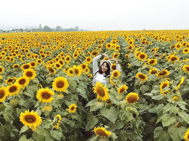 Những ngày cuối tháng 12 cũng là thời điểm hoa nở đẹp nhất năm, nơi đây trở thành điểm đến được yêu thích. Từ Hà Nội, bạn có thể bắt xe từ bến xe Giáp Bát, Mỹ Đình... đi Nghệ An với giá khoảng 200.000 đồng. Đến huyện Nghĩa Đàn, bạn bắt tiếp một chuyến xe khách hoặc thuê xe ôm chạy đến xã Nghĩa Sơn sẽ thấy cánh đồng hoa hướng dương. Ảnh: Trương Diệu Thơm.