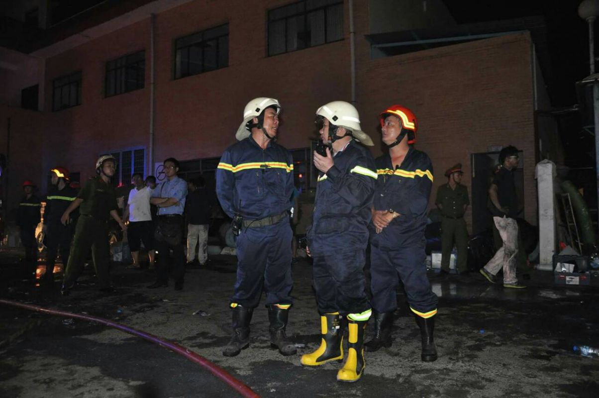 Trung tá Nguyễn Thái Linh đang trực tiếp chỉ đạo anh em dập lửa