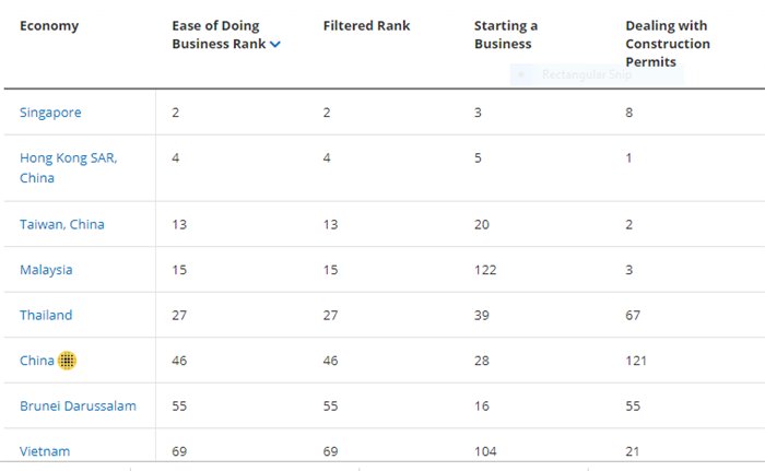 Theo báo cáo này, Việt Nam tụt 1 bậc trong chỉ số thuận lợi của môi trường kinh doanh, từ 68 xuống 69 trên 190 nước trong bảng xếp hạng, mặc dù điểm tổng của Việt Nam tăng từ 66,77 lên 68,36 và năm vừa qua.