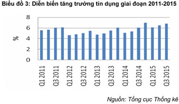 Nếu như trong năm 2011, NHNN phải nhanh chóng áp dụng các chính sách chặt chẽ để kiềm chế tốc độ tăng trưởng tín dụng ở mức cao trên 30% xuống còn trên 14% để hỗ trợ công tác kiểm soát lạm phát, thì ngay trong năm 2012 khi tăng trưởng tín dụng có dấu hiệu "ngưng trệ" ảnh hưởng tới tăng trưởng kinh tế, NHNN đã nhanh chóng thay đổi mục tiêu điều hành theo hướng tăng trưởng tín dụng nhưng thận trọng. Điều này nhằm đáp ứng nhu cầu vốn của nền kinh tế, song phải theo nguyên tắc đảm bảo chất lượng tín dụng, hạn chế phân bổ vốn vào khu vực không khuyến khích có nguy cơ gây ra lạm phát cao và tăng trưởng thiếu bền vững trong tương lai. Nhờ đó, tăng trưởng tín dụng đã có sự phục hồi qua các năm, cụ thể: năm 2012 là 8,85%; năm 2013 là 12,51%; năm 2014 là 14,16%; 6 tháng đầu năm 2015 tăng 7,83%. Trong giai đoạn này, tín dụng tăng bình quân khoảng 13%/năm, thấp hơn so với mức tăng bình quân 33,3%/năm giai đoạn 2006-2010, nhưng tăng trưởng kinh tế vẫn đạt mức hợp lý.