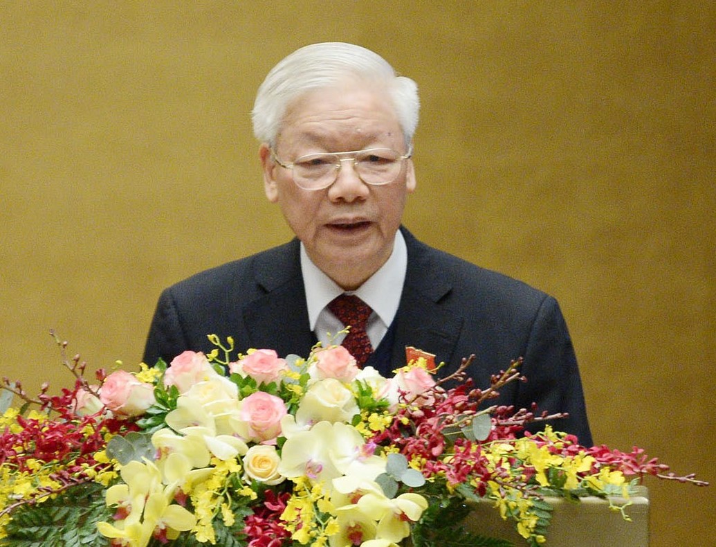 Chủ tịch nước Nguyễn Phú Trọng phát biểu trước Quốc hội sáng ngày 24/3. Ảnh: Quốc hội