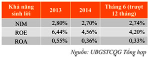 Mặc dù tăng trưởng tín dụng khá, hệ số NIM (tỷ lệ lãi cận biên) tăng nhẹ, nhưng do trích lập dự phòng rủi ro tăng khiến khả năng sinh lời của khối NHTM giảm