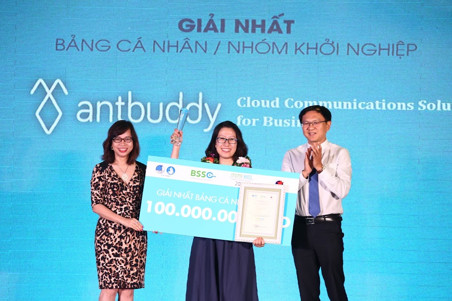 - Giải Nhất (Cá nhân): AntBuddy – Hà Thanh An, giá trị giải thưởng100 triệu đồng + Tài trợ văn phòng trong vòng 03 tháng trị giá 10 triệu đồng.