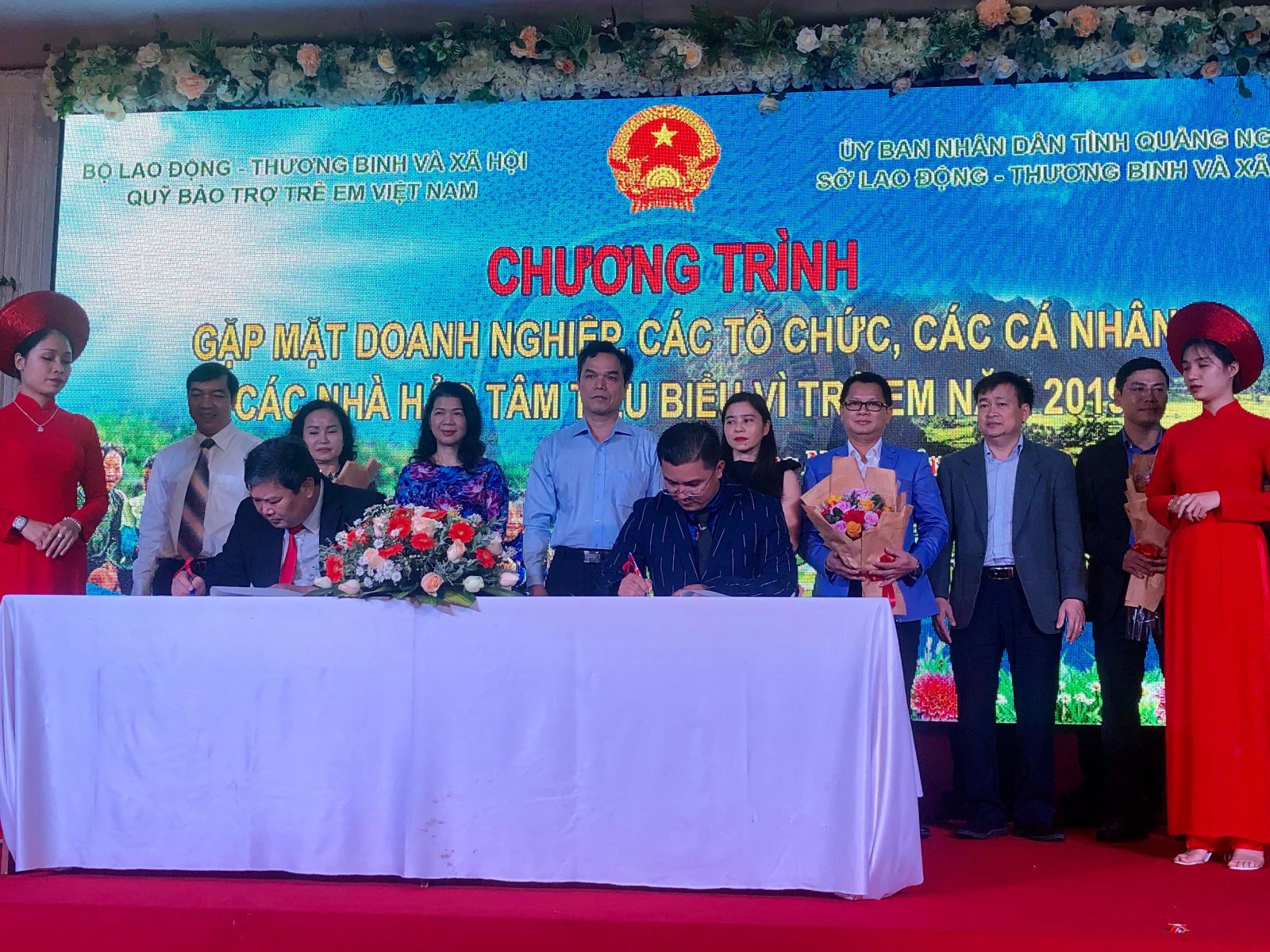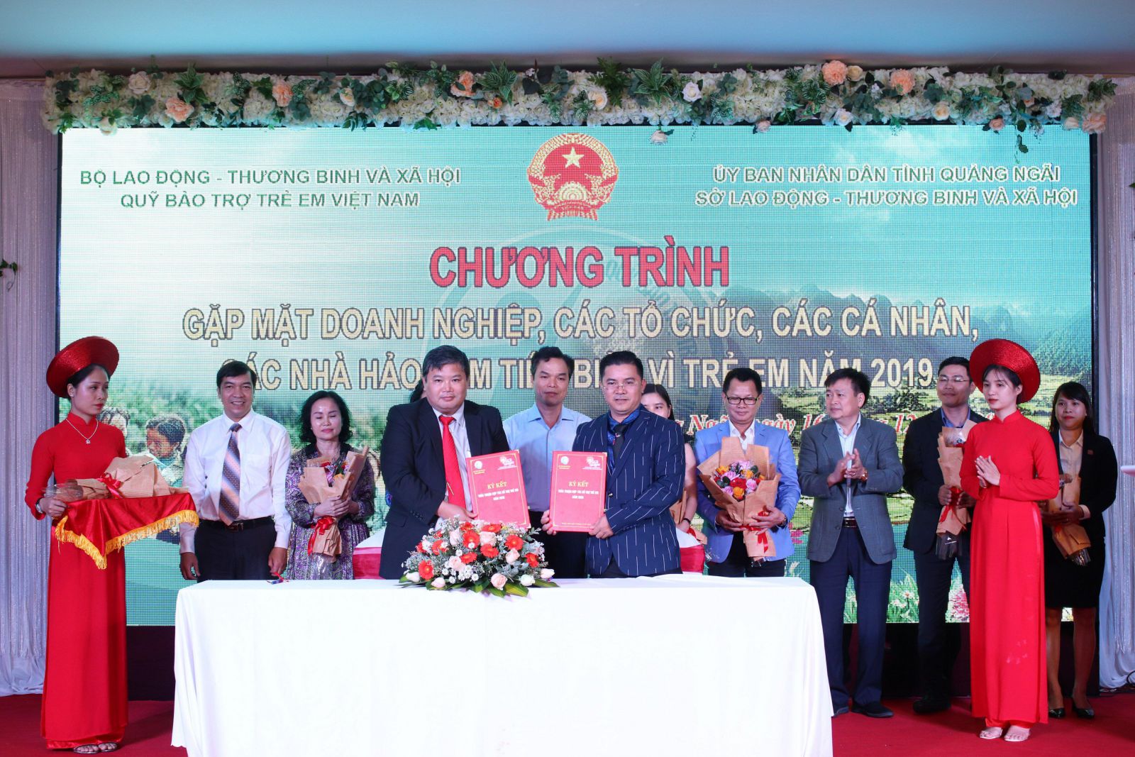 Ông Đinh Trọng Vỹ CTHDQT Cty CP XH Hành Trình Kết Nối Yêu Thương Việt Nam Ký kết tài trợ cho Quỹ Bảo Trợ Trẻ Em Quảng Ngãi 1 tỷ đồng để trao học bổng và quà cho năm 2020 . Ký kết có sự chứng kiến của ông Nguyễn Cao Phúc Chủ Tịch UB MTTQVN Tỉnh Quảng Ngãi và Ông Đặng Ngọc Dũng PCT UBDN Tỉnh Quảng Ngãi và toàn bộ các sở ban ngành về tham dự