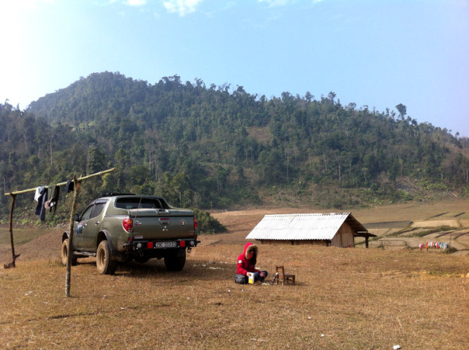 Chúng tôi vừa đi vừa đợi nhau, phòng có sự cố xảy ra còn kịp thời hỗ trợ. Chiếc ôtô chậm chạp nhưng chắc chắn vượt qua từng vùng sình lầy trong khi tài xế vừa lái xe vừa tái người vì sợ.