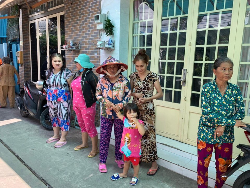 Ông Trần Văn Dũng- Trưởng khu phố 9, phường Bình Trị Đông B, Quận Bình Tân, TP. HCM cùng Ban giám đốc cty trao những phần quà hết sức ý nghĩa cho bà con có hoàn cảnh khó khăn tại địa phương