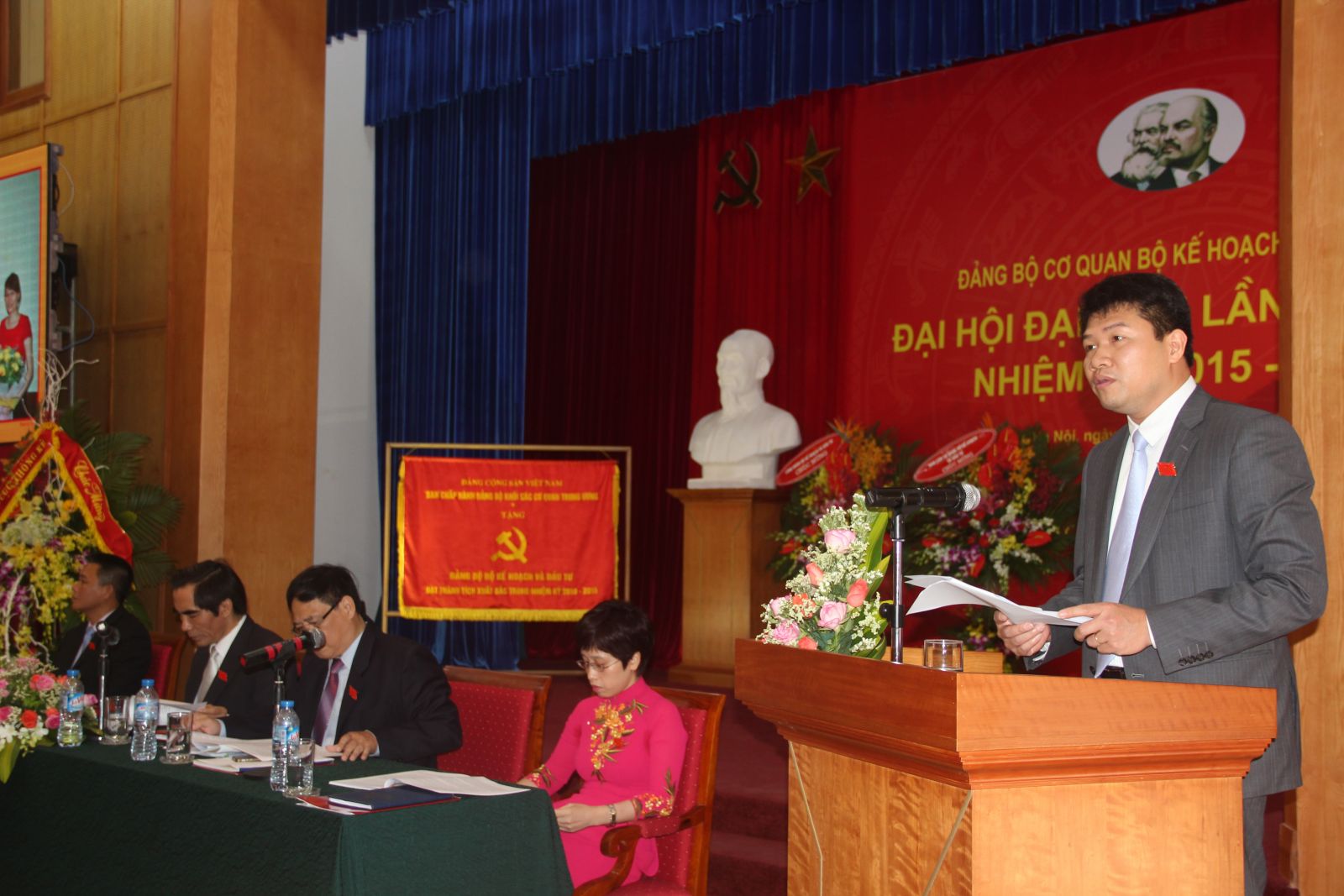 Trong bài Diễn văn, đồng chí nhấn mạnh: 5 năm qua, các cấp ủy đã phát huy vai trò hạt nhân chính trị của các tổ chức đảng, phối hợp chặt chẽ với thủ trưởng cơ quan, đơn vị, lãnh đạo đội ngũ cán bộ, đảng viên, công chức, viên chức và người lao động thực hiện tốt nhiệm vụ chuyên môn được giao; Đảng ủy Bộ đã phối hợp với Ban Cán sự đảng, Lãnh đạo Bộ, cụ thể hóa và triển khai tổ chức thực hiện các Chương trình hành động của Bộ thực hiện Nghị quyết Đại hội XI của Đảng. Chỉ đạo cấp ủy, tổ chức đảng cơ quan, đơn vị, triển khai thực hiện nghiêm túc các nghị quyết của Đảng, Quốc hội, Chính phủ, phương hướng, nhiệm vụ của Đảng bộ cơ quan Bộ Kế hoạch và Đầu tư nhiệm kỳ 2010 - 2015 đạt được những kết quả nổi bật trên các mặt công tác của ngành Kế hoạch và Đầu tư.