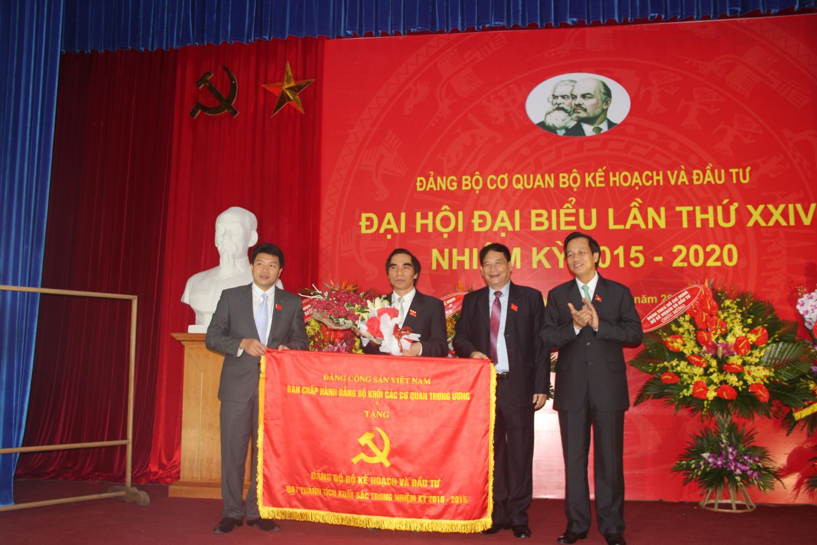 Ghi nhận những đóng góp của Đảng bộ Bộ Kế hoạch và Đầu tư, đồng chí Đào Ngọc Dung, Ủy viên Trung ương Đảng, Bí thư Đảng ủy Khối các cơ quan Trung ương trao Cờ thi đua xuất sắc cho Thường vụ Đảng ủy Bộ Kế hoạch và Đầu tư nhiệm kỳ 2010 – 2015 (có 6 trong tổng số 63 đảng bộ thuộc khối cơ quan Trung ương vinh dự nhận cờ thi đua).