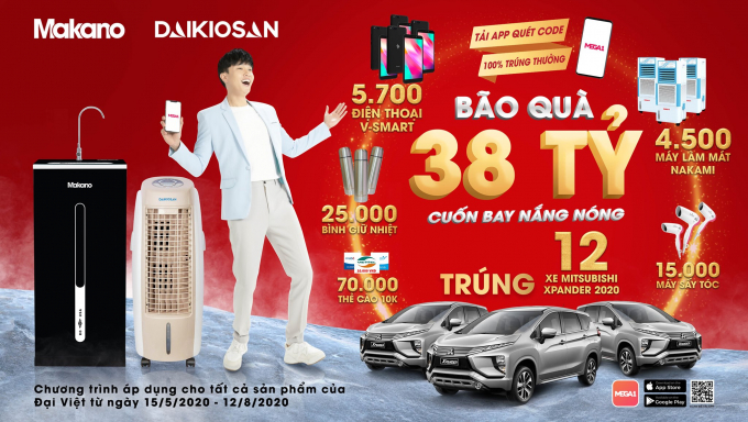 Theo đó, từ ngày 15/5 đến 12/8/2020, khi khách hàng mua bất kì sản phẩm máy làm mát (quạt, điều hoà), máy lọc nước, thiết bị bếp… của thương hiệu Daikiosan, Makano hoặc các sản phẩm thương hiệu khác được Đại Việt phân phối trên toàn quốc, sẽ trúng thưởng 100% với tổng giải thưởng lên đến 120.000 quà tặng cực giá trị, hấp dẫn.