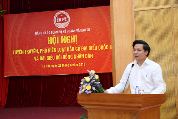 Phát biểu khai mạc Hội nghị đồng chí Mai Ngọc Bích, Phó Bí thư thường trực Đảng ủy cơ quan Bộ Kế hoạch và Đầu tư nêu rõ cuộc bầu cử đại biểu Quốc hội khóa XIV và đại biểu Hội đồng nhân dân các cấp nhiệm kỳ 2016-2021 là sự kiện chính trị lớn, có ý nghĩa quan trọng đối với cả nước và của từng địa phương. Cuộc bầu cử là đợt vận động và sinh hoạt dân chủ sâu rộng trong mọi tầng lớp nhân dân để lựa chọn, bầu được những đại biểu ưu tú, đại diện cho nhân dân cả nước tại Quốc hội khóa XIV, cơ quan quyền lực nhà nước cao nhất và tại Hội đồng nhân dân các cấp nhiệm kỳ 2016-2021, cơ quan quyền lực nhà nước ở địa phương.
