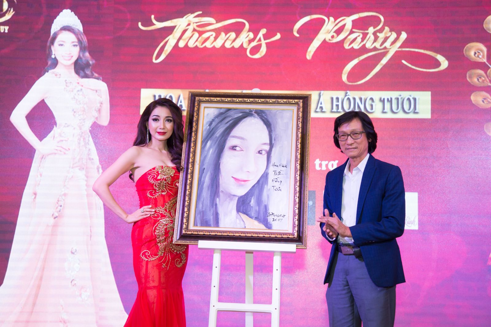 Họa sĩ Lê Phương đã bất ngờ dành tặng bức tranh chân dung cho Hoa hậu Hồng Tươi