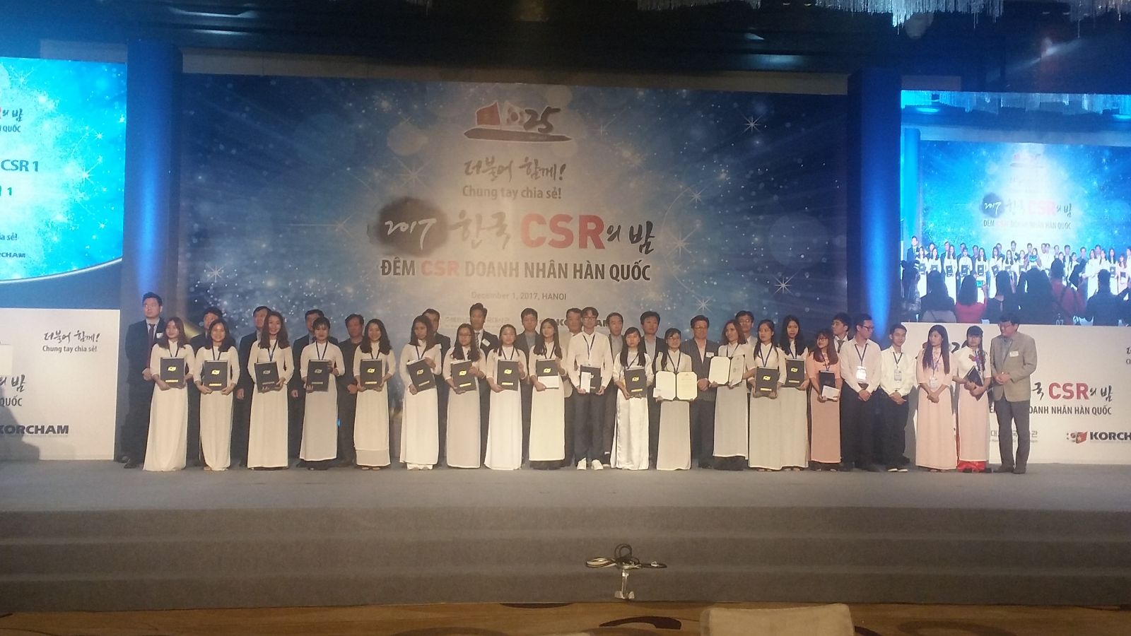 Sự kiện này được thực hiện trong khuôn khổ chương trình "Đêm CSR Doanh nhân Hàn Quốc" diễn ra ngày 01/12/2017. Tham dự buổi lễ có ông Lee Huyk, Đại sứ Đặc mệnh toàn quyền của Đại Hàn dân quốc tại Việt Nam; bà Đào Hồng Lan Thứ trưởng Bộ Lao động, Thương binh và Xã hội; ông Ryu Hang Ha, Chủ tịch Hiệp hội Doanh nghiệp Hàn Quốc tại Việt Nam; ông Hồ Sỹ Hùng, Cục trưởng Cục Phát triển Doanh nghiệp, Bộ Kế hoạch và Đầu tư, cùng với hơn 100 doanh nghiệp Hàn Quốc đang hoạt động tại Việt Nam.