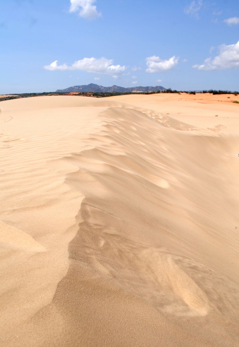 Đến đây, du khách sẽ vô cùng thích thú khi gặp một “sa mạc” cát vàng với những đụn, những đồi cát chập chùng hoang sơ.