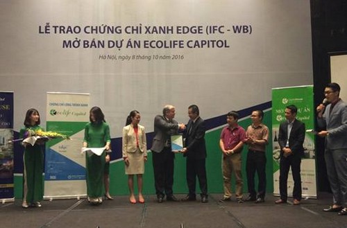 Đại diện của IFC trao chứng chỉ công trình xanh EDGE cho công trình EcoLife Capitol của Capital House.