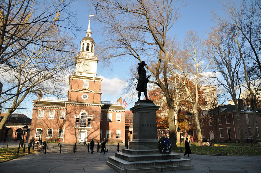 Independence Hall – Tòa nhà độc lập: nơi đây nước Mỹ chính thức ra đời với sự kiện bản tuyên ngôn độc lập được ký kết vào ngày 4/7/1776. Cũng tại đây bản hiến chương Mỹ đầu tiên được soạn thảo vào mùa hè 1787.