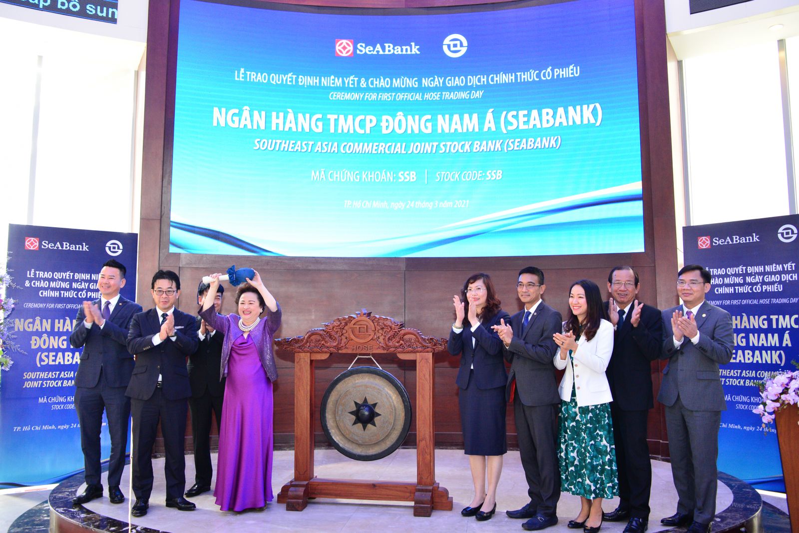 Về 2 cổ phiếu mới lên sàn, HOSE cho biết, ngày 24/03/2021 đã tổ chức lễ trao quyết định niêm yết và đưa 1.208.744.208 cổ phiếu của Ngân hàng Thương mại cổ phần Đông Nam Á (mã chứng khoán: SSB) vào giao dịch. Tổng giá trị chứng khoán niêm yết của cổ phiếu SSB đạt 12.087.442.080.000 đồng, giá tham chiếu trong ngày giao dịch đầu tiên là 16.800 đồng/cổ phiếu. Tính đến thời điểm hiện tại, Seabank là ngân hàng thứ 2 thực hiện niêm yết trên HOSE kể từ đầu năm 2021 và là ngân hàng thứ 16 niêm yết tại HOSE.